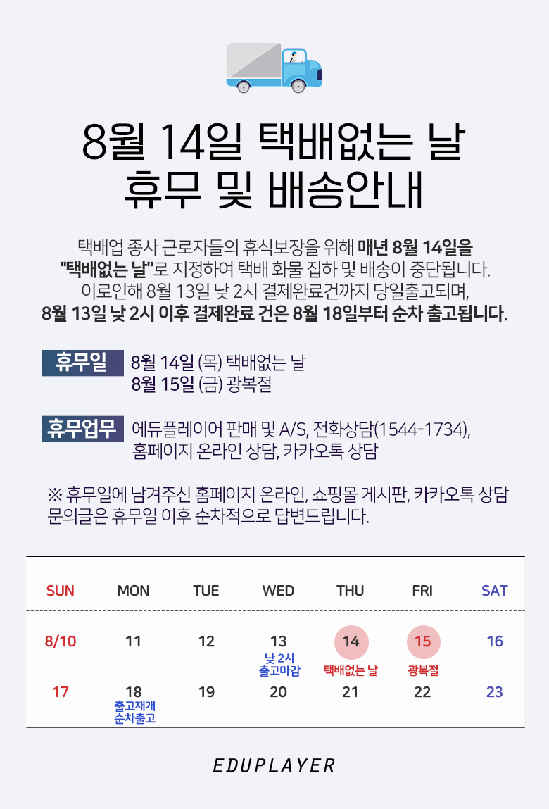 [이용안내] 8월 14일 택배없는 날 휴무 및 배송안내